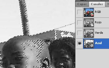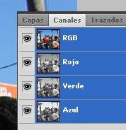Seleccionar CANAL RGB ( Todo los canales se ponen AZUL ) |